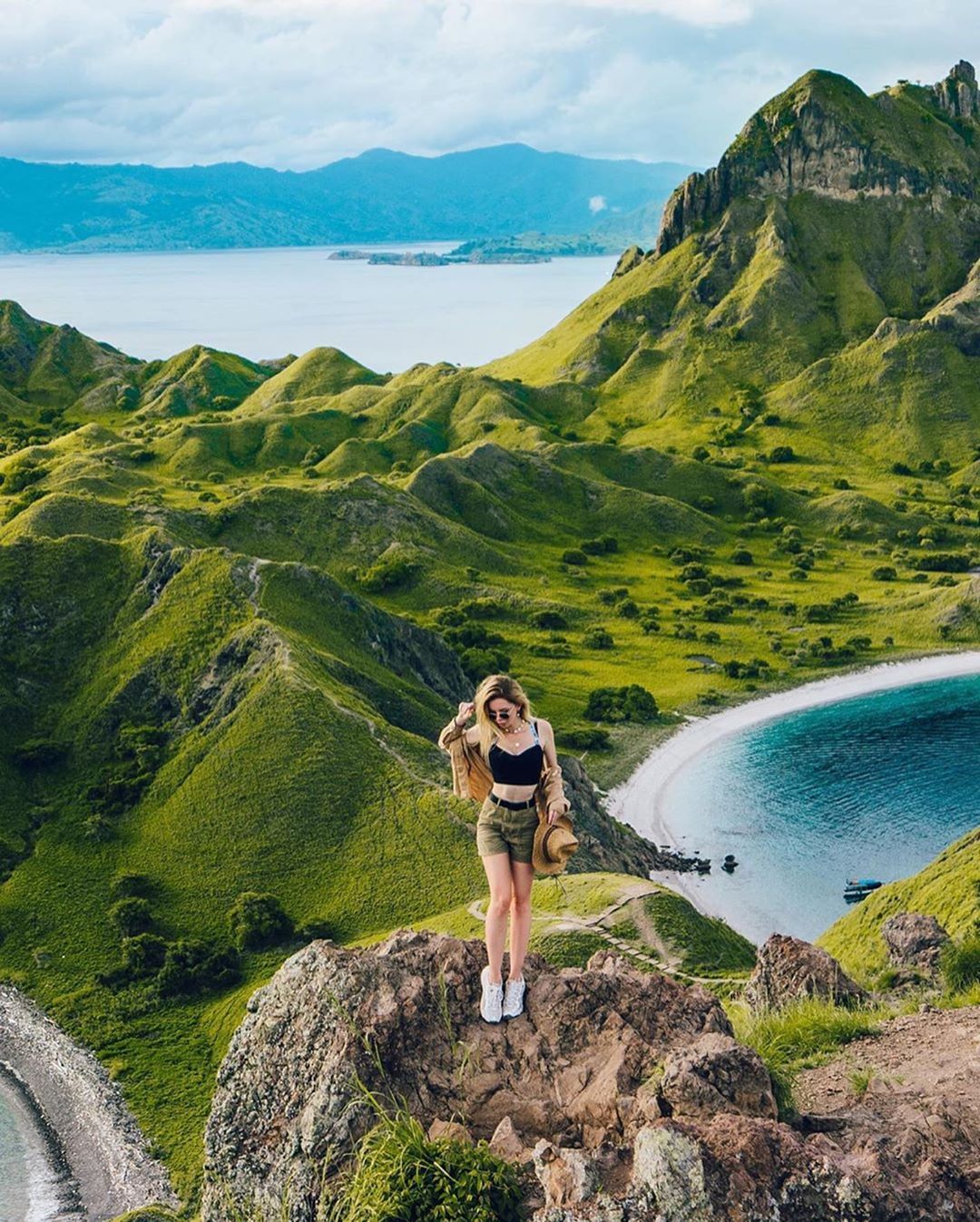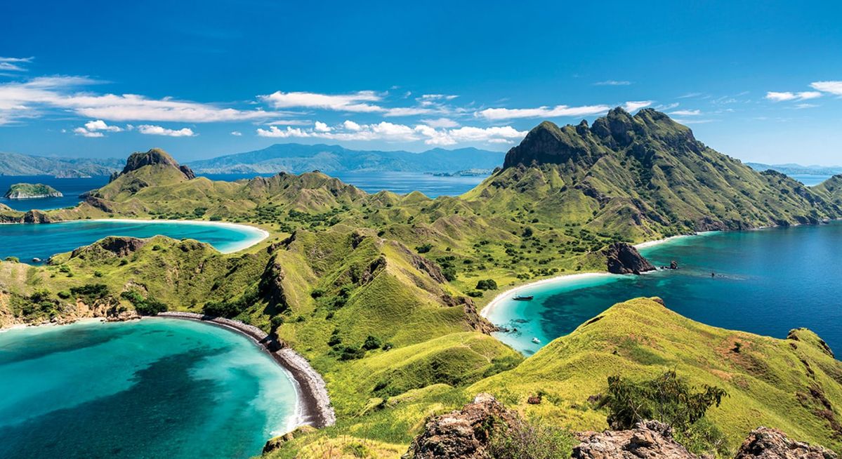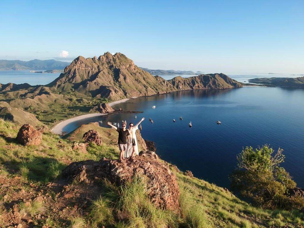Padar Island is arguably the most famous and essential destination in the Komodo National Park, renowned for its dramatic, volcanic landscape. Visitors embark on a rewarding uphill trek to reach the island's summit, where they are immediately greeted by the globally recognized panoramic view. This spectacular vista showcases the meeting point of the island’s rugged ridges and three distinct crescent-shaped bays, each featuring different colored sands. The effort of the climb is fully justified by this unparalleled photo opportunity and the sheer, raw beauty of the archipelago.