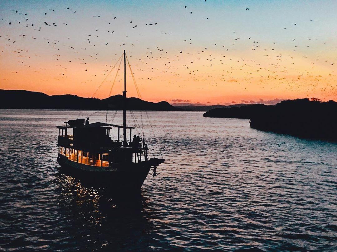The "Sunset at Kalong Island" experience is one of the most unique and unforgettable events in the Komodo archipelago. As the sun dips below the horizon, painting the sky with fiery colors, tour boats anchor silently near the mangrove forests of Kalong Island. The main attraction is the mass exodus of thousands of giant fruit bats (flying foxes) that emerge from the mangroves and soar across the twilight sky in a vast, dark stream as they head to other islands for foraging. It is a peaceful yet spectacular wildlife phenomenon, perfectly concluding a day of island hopping.