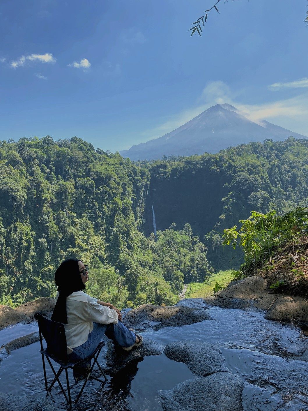 Kapas Biru Waterfall: The Turquoise Cascade Kapas Biru, meaning "Blue Cotton," is a stunning, multi-tiered waterfall nestled deep within a canyon near the slopes of Mount Semeru. It is renowned for the intense, slightly bluish-white hue of its water flow, which dramatically descends over high, reddish-brown cliffs. The waterfall offers a rugged and rewarding trekking experience down a steep path into the canyon, culminating in a beautiful, misty, and photogenic natural sanctuary.